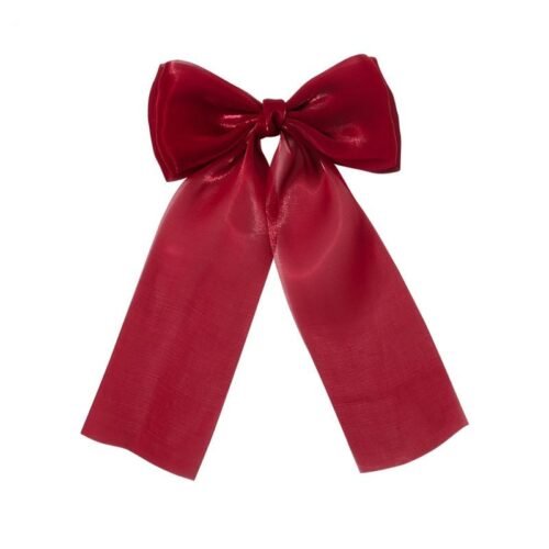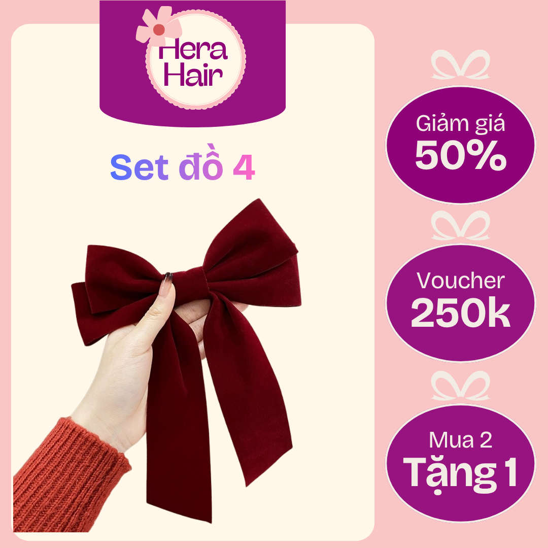 Kiểu dáng: Nơ cánh kép (double layer) với phần đuôi nơ dài rủ xuống tự nhiên. Dáng nơ to bản, tạo điểm nhấn nổi bật cho mái tóc.